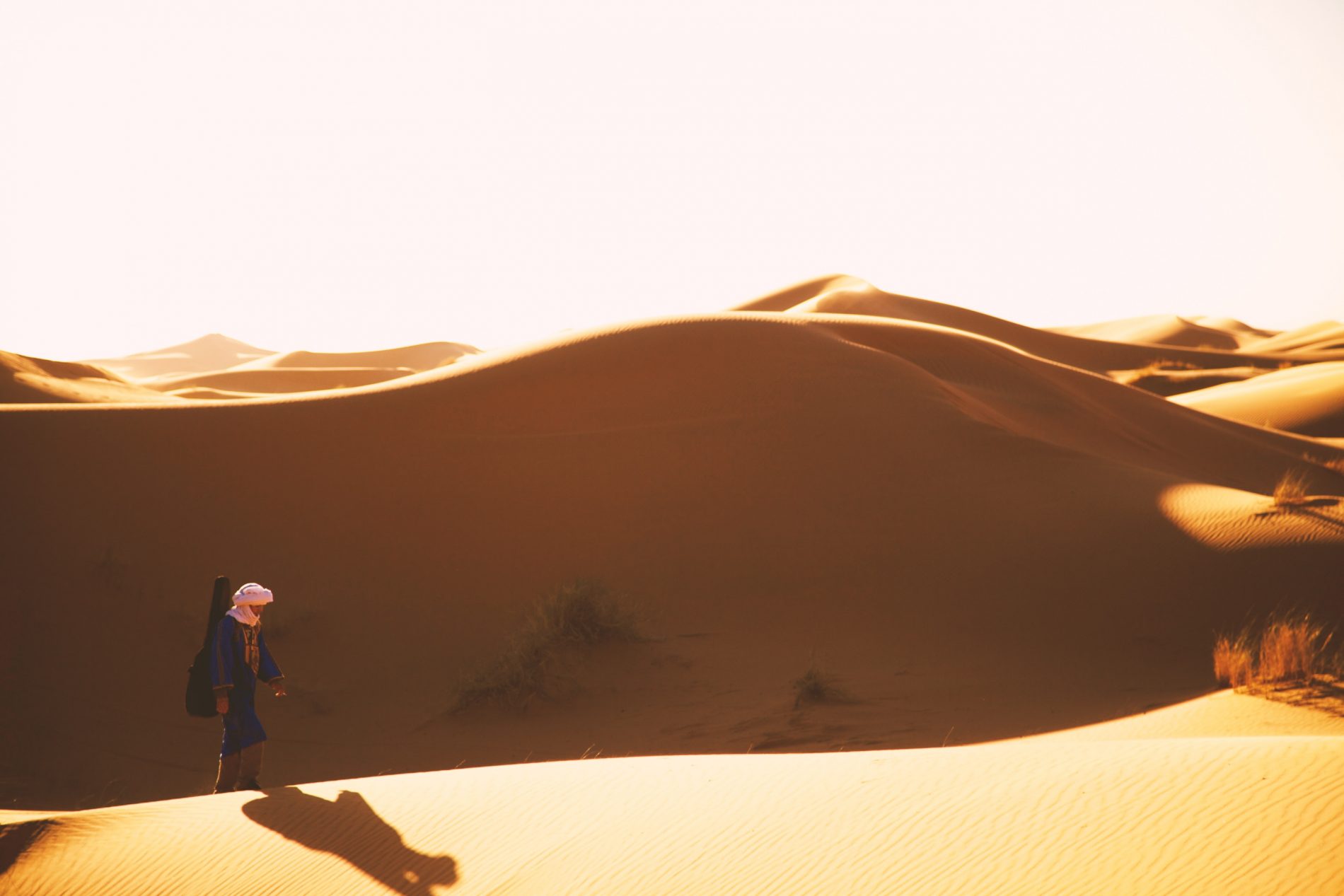 Temps de route estimé à 1h30 pour se rendre à Zagora, 3h30 pour Ouarzazate, 7h00 pour Agadir et 6h00 pour Marrakech. Après le petit déjeuner, nous marcherons à travers les vastes étendues désertiques. Nous prendrons le déjeuner à l’ombre d’un acacia Retour en fin d’après-midi au village de M’hamid. Possibilité de passer la nuit en maison d’hôte à Zagora ou transfert à Marrakech – Ouarzazate – Agadir.